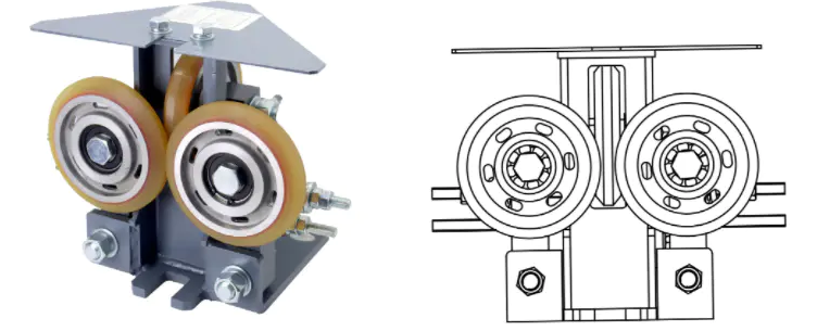 Pemasangan Mengambang: Memungkinkan roller beradaptasi untuk memandu kesalahan pemasangan rel dalam kisaran ±3°.