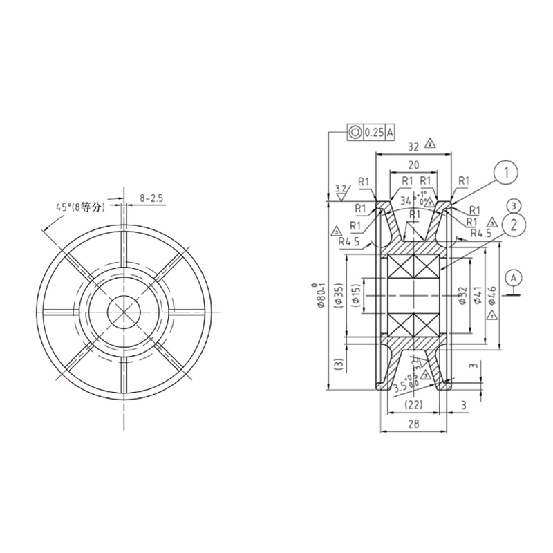 Rol berbentuk V mengadopsi desain berbentuk V. Desain ini memungkinkan roller untuk menghubungi rel pemandu atau ban berjalan dengan lebih baik di sistem eskalator, sehingga memberikan dukungan dan panduan yang stabil. Diameter luar 80mm dan tingginya 30mm, yang dapat digunakan dalam berbagai aplikasi. Persyaratan pemasangan eskalator dan peralatan pengangkut memastikan kompatibilitas dengan peralatan yang ada; dilengkapi dengan bantalan bola dalam alur 6202, bantalan ini dapat memenuhi kebutuhan penggunaan roller eskalator dalam pengoperasian kecepatan tinggi dan kondisi beban berat. Rol berbentuk V terbuat dari nilon, yang memiliki ketahanan benturan yang baik dan sifat pelumasan sendiri.
